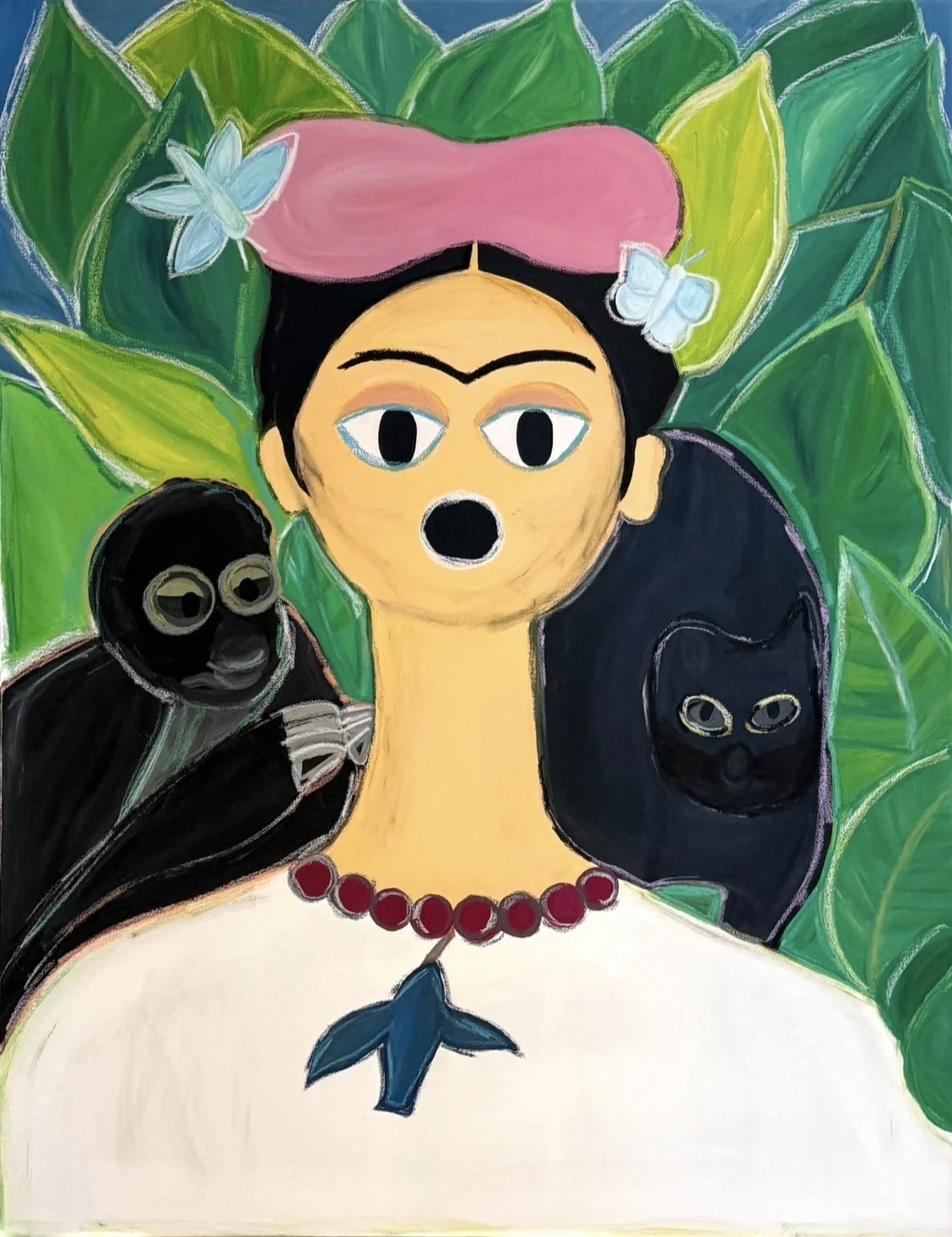 Frida in Quarantine, 2025 acrylic & oil pastels on canvas 90 x 116cm